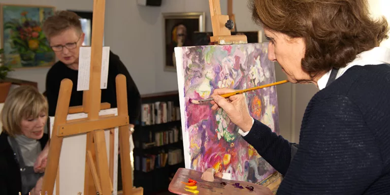 We werken in onze eigen Werkplaats of het schilderlokaal, beide in het centraal gelegen gebouw ‘De Wieken’.